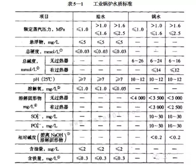 (4)直流(貫流)鍋爐給水應(yīng)采用鍋外化學(xué)水處理,其水質(zhì)按表5—1中額定蒸汽壓力為大于1.6MPa、小于等于2.5Mpa的標準執(zhí)行。