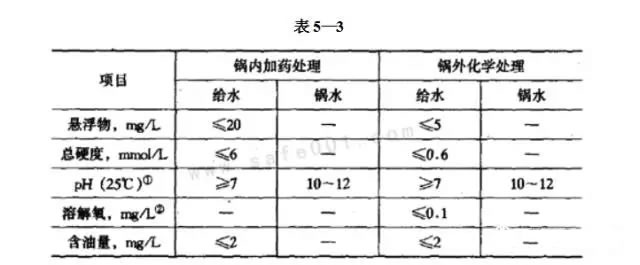 (1)蒸汽鍋爐和汽水兩用鍋爐的給水一般應(yīng)采用鍋外化學(xué)水處理,水質(zhì)應(yīng)符合表5—1的規(guī)定。
