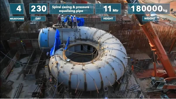 據(jù)悉,視頻中項(xiàng)目的核心是泵站的建設(shè)。泵站設(shè)計(jì)規(guī)模為每秒1,050立方米,配置14臺(tái)飛力A-C定制泵,單臺(tái)水泵配用功率為40,000千瓦,單臺(tái)水泵和電機(jī)的重量約為600噸,而該工程也因此成為印度史上最恢弘的里程碑。