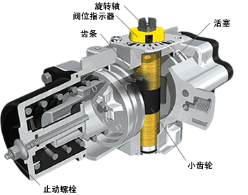 輸出傳動(dòng)裝置 單活塞 / 拔叉 單活塞 / 齒條 & 小齒輪
