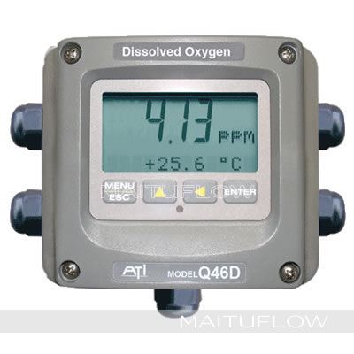 美國ATI公司的Q45D溶氧分析儀具有測量穩(wěn)定、維護(hù)量少的特點。電化學(xué)溶氧傳感器采用高強度的5mil太氟隆膜片,抗磨損,此膜片允許水中氧分子進(jìn)入傳感器中的反應(yīng)腔與電解質(zhì)發(fā)生反應(yīng),在兩電極之間形成與水中氧分子濃度或比例的微弱電流。傳感器膜片每6個月或稍長時間更換一次。