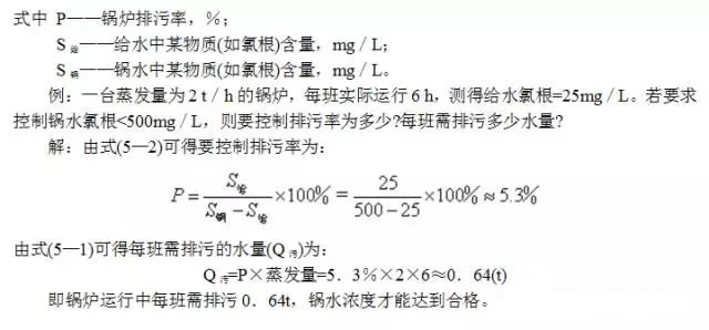 排污率就是排污水量占鍋爐蒸發(fā)量的百分比。鍋爐運行中常以監(jiān)測鍋水氯離子(也稱氯根)的含量來指導(dǎo)鍋爐的排污。其計算方法如下: