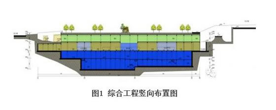 貴陽市彭家灣五里沖棚戶區(qū)改造污水處理綜合工程是國內首例地下式污水廠與城市改造綜合工程結合的設計案例,該工程在地下四層建筑中集地下商場、機械停車庫、公交首末站、6.0×104 m3/d規(guī)模的污水處理廠為一體,地面為景觀公園,總用地面積3.94ha。設計方案有效解決了舊城改造中污水治理與城建開發(fā)用地需求的矛盾,最大程度地減少了對生態(tài)環(huán)境的破壞。